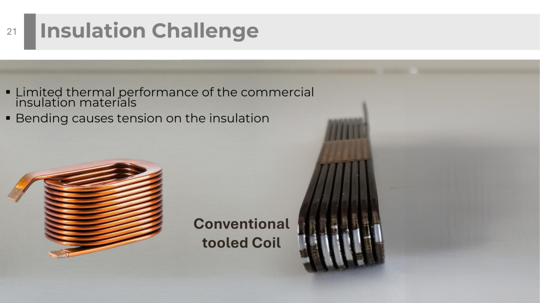 电气绝缘是电机安全、稳定运行的基础,而传统工装线圈的绝缘工艺存在两大核心痛点:一是商用绝缘材料的热性能有限,无法适配高频高温电机的应用场景;二是线圈折弯、工装等二次加工会让绝缘层产生张力,极易导致绝缘层破损,影响电机的绝缘性能。