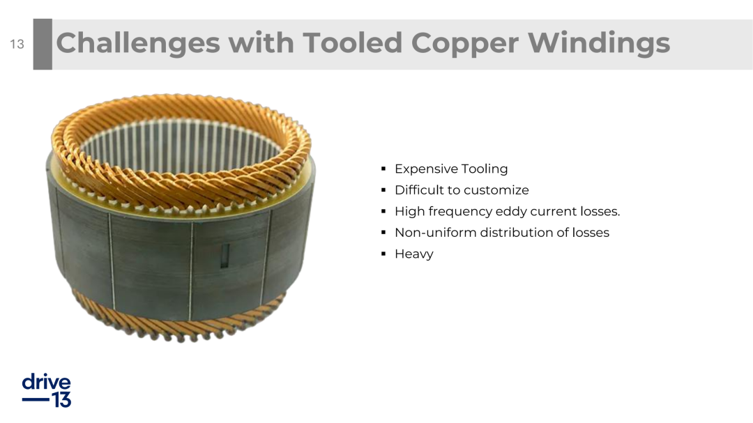 绕组作为电机的核心部件,其设计与制造直接决定了电机的效率、损耗与重量,而传统铜绕组在高频场景下的诸多痛点,正是 Drive13 铝基 3D 打印绕组的创新切入点。Drive13 通过对绕组结构的精准优化,打造了成型轮廓绕组、高填充线圈、混合线圈三大核心绕组设计,让铝基绕组在性能上全面超越传统铜绕组。
