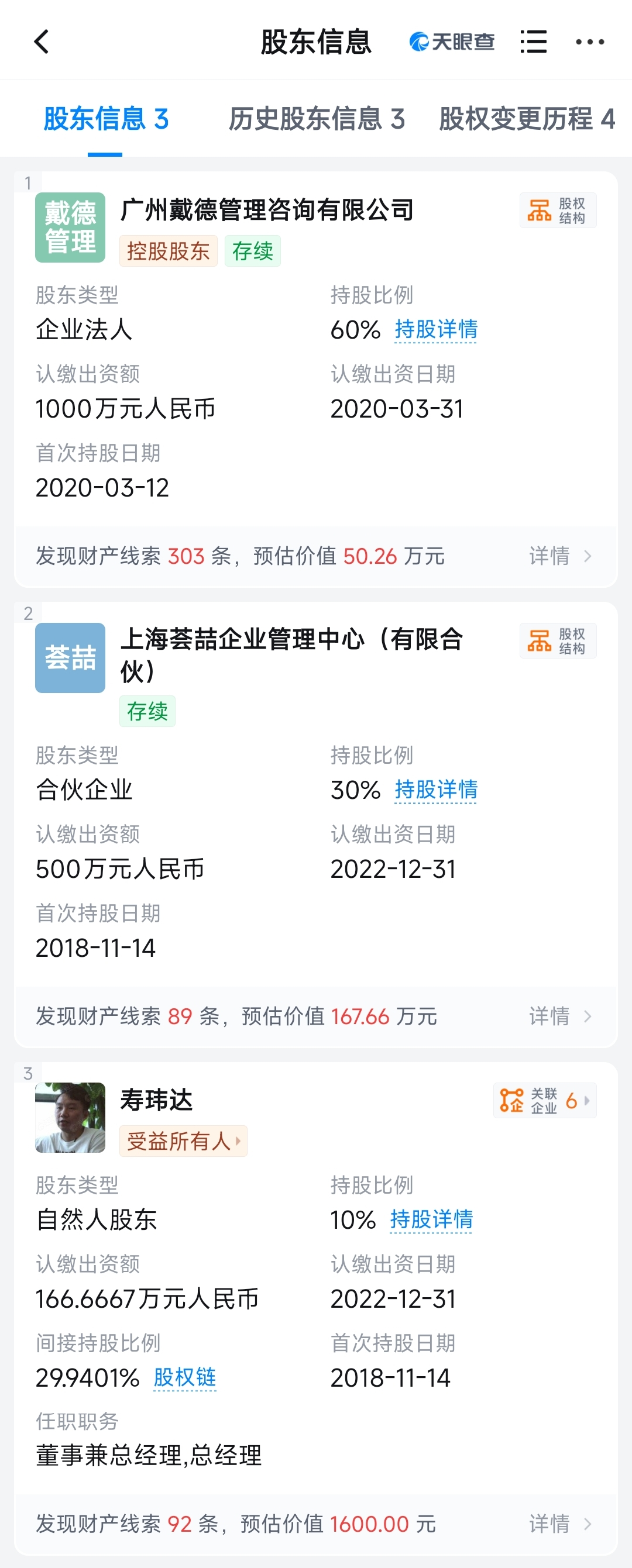 目前,闻澜的法定代表人是寿玮达,剩下40%的股份正是寿玮达持有的10%和上海荟喆持有的30%。寿玮达拥有上海荟喆99.8%的股份,也是该公司的最终受益人。