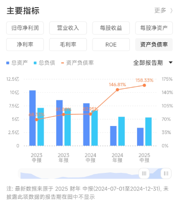 业绩陷入亏损泥沼的同时,传递娱乐高负债及资金吃紧等风险因素也开始暴露。截至2024年12月底,经营活动所得现金净额为-277.6万元;2017年,公司资产负债率仅为32.05%,截至2024年12月已经攀升至158.33%,创出历史新高。