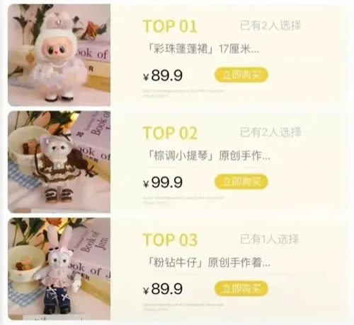 甚至,就连给Labubu织衣服,也成了一门生意比如一开始两块钱一件的娃衣市场,突然爆火后,价格涨到上百,有大学生爆料,凭借兼职给Labubu钩织衣服月入超2万更是冲上热搜。