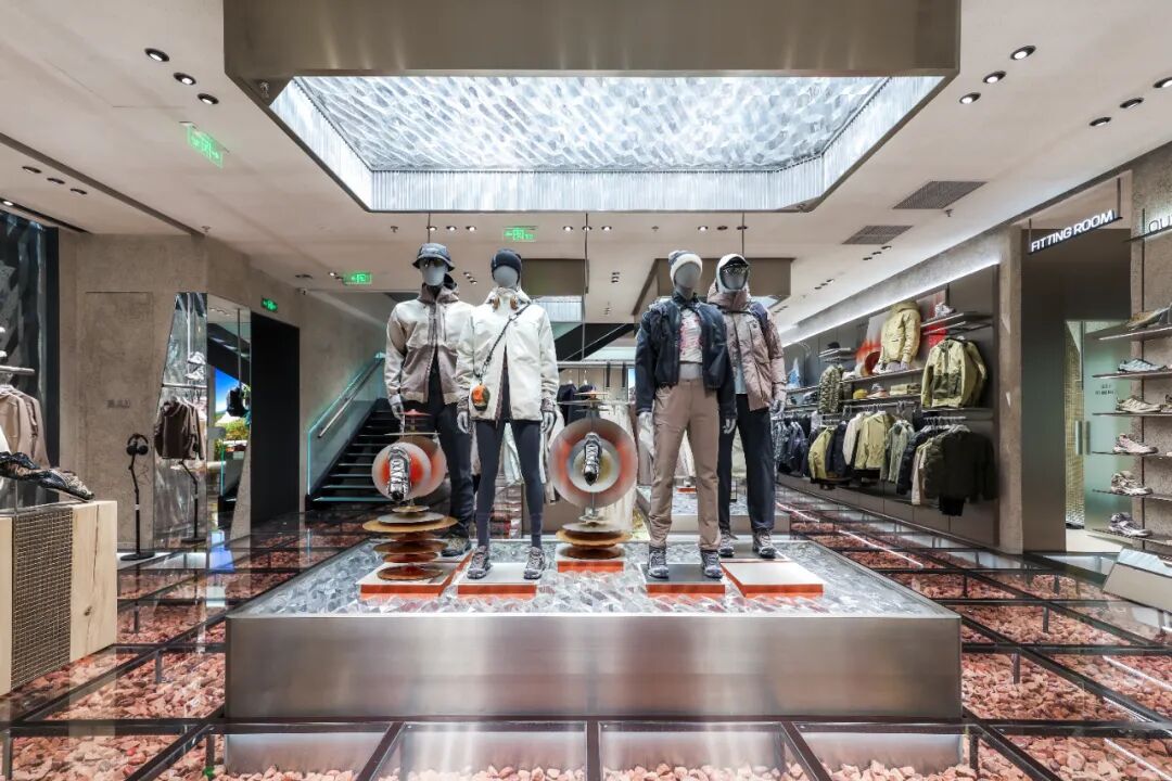 “星际之门” 的设计同时承载着品牌发展的隐喻内涵。萨洛蒙起源于法国阿尔卑斯地区,具备专业户外产品研发与生产的基因,此次门店设计将该基因延伸至城市户外生活方式的范畴。通过空间规划与跨时空叙事的设计手法,品牌实现了法式户外理念与成都本地文化的结合,推动零售空间从单一的商品销售功能,向承载城市户外文化的体验功能转变。