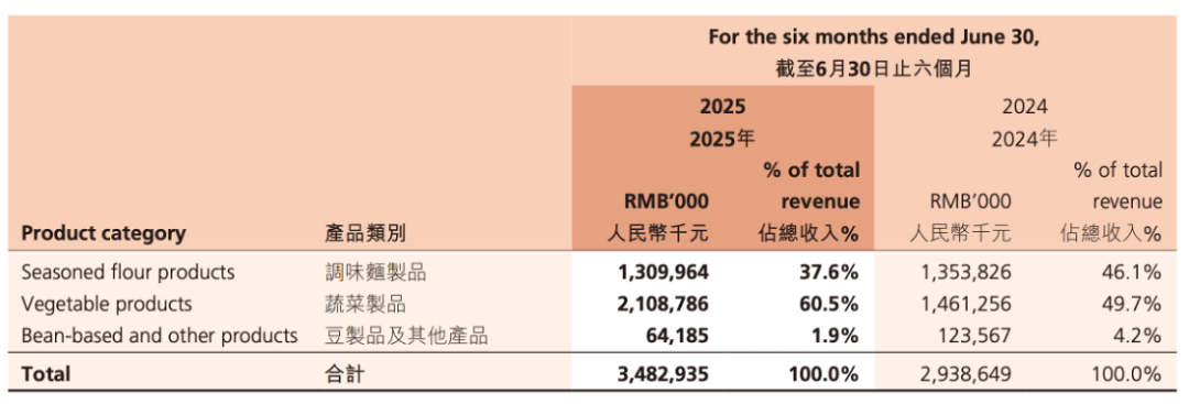 (卫龙2025年H1不同产品收入情况)