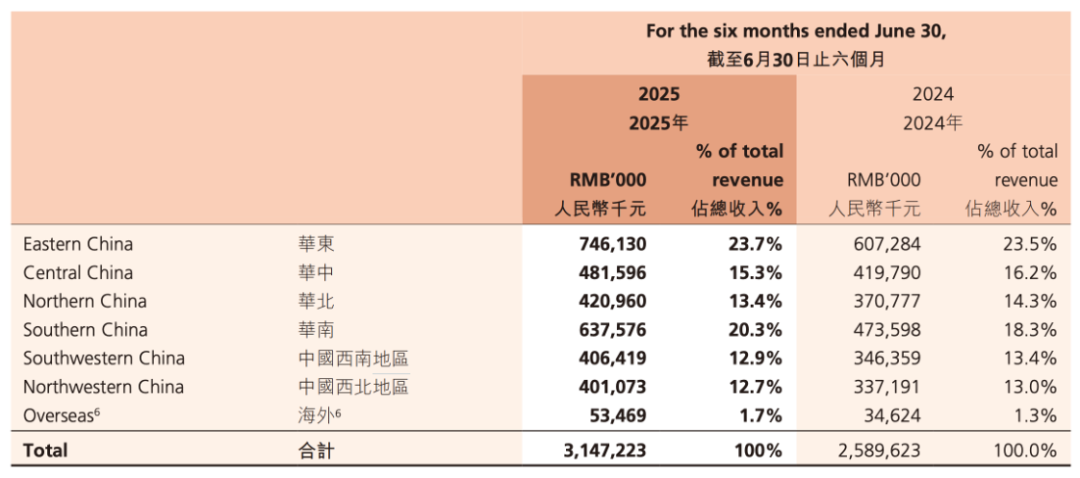 财报数据显示,卫龙2025年上半年销售额达到31.5亿元,其中华南地区上半年销售额达到6.4亿元,为第二大市场营收占比为20.3%,仅次于华东地区。