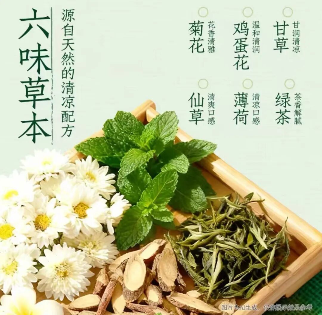据“元气黑板报”披露,在核心配方上,好自在清凉茶采用菊花、鸡蛋花、甘草、仙草、薄荷、绿茶六味天然草本原料,经专业研发团队反复调试配比而成,最大程度保留草本原料中的活性成分。