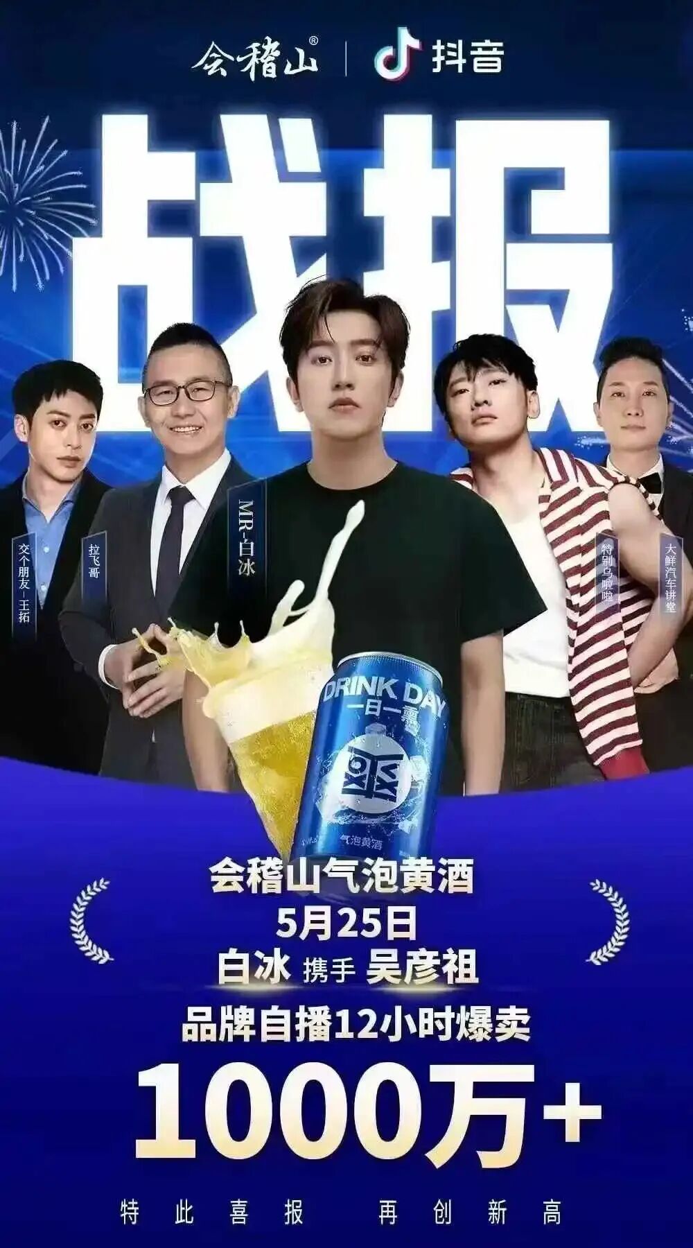 2025年,会稽山凭借气泡黄酒在抖音直播中创下12小时销售额破千万的纪录,股价一度涨停,市值超越古越龙山,引发行业广泛关注。据企业披露,截至5月30日,气泡黄酒在抖音渠道GMV突破2000万元;此外,去年“618”大促期间,会稽山全网GMV(商品交易总额)突破5000万元,同比增长400%。
