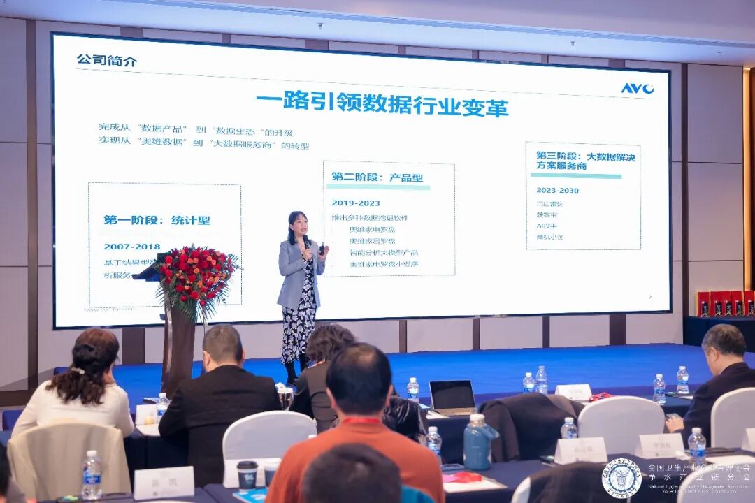 近日,2025年全国卫生产业企业管理协会净水产业链分会年会于苏州顺利召开,奥维云网(AVC)凭借在环境健康与清洁电器领域的深厚数据积淀、全链条服务能力及行业公信力,受邀担任协会数据事务部部长单位一职。会上,奥维云网(AVC)环境健康和清洁电器事业部总经理田亚丽发表主题演讲,系统阐述2026年数据服务规划,明确将以大数据为核心驱动力,为净水行业发展注入新动能,为协会会员提供全方位价值支持。