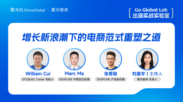 为助力中国出海品牌商家把握行业趋势、实现可持续增长,霞光社发起《霞光社出海实战实验室》深度对话,联合 DTC&UGC Center 创始人 William,以及 SHOPLINE 中国区总经理 Marc、产品副总裁张思聪,以 “增长新浪潮下的电商范式重塑之道” 为主题,共同发布并深度拆解 2026 年电商四大核心范式,为中国出海品牌商家提供一套可借鉴、可实操的电商增长行动指南。