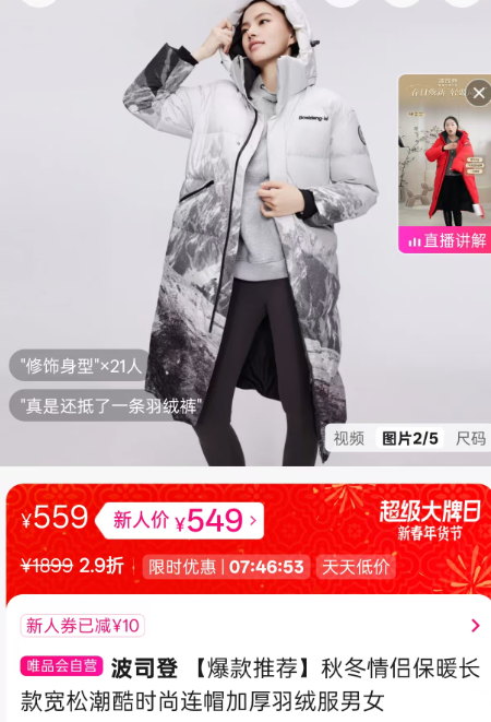 例如最近很火的羽绒服消费,唯品会上波司登、鸭鸭等大牌羽绒服的价格,很多都被打到了专柜价两三折甚至更低,很受年轻人的青睐。以至于不少网友直言:“唯品会上虽然买不到最便宜的羽绒服,但能买到最便宜的雪中飞、波司登、鸭鸭等品牌”。