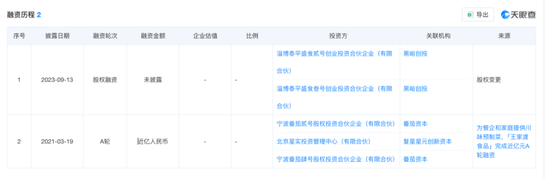 (王家渡融资情况,天眼查数据)