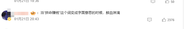 看到这一悲剧,不少打工人突然就破防了,每天辛辛苦苦的工作,到底为了啥?比如有网友表示:当“拼命赚钱”这个词变成字面意思的时候,鲜血淋漓……