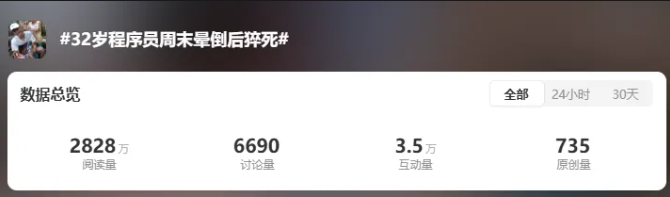 昨天的一条热搜,看得无数打工人心酸无比——32岁程序员周末晕倒后猝死……32岁猝死程序员抢救时被拉工作群!妻子晒日常催回家记录看哭网友