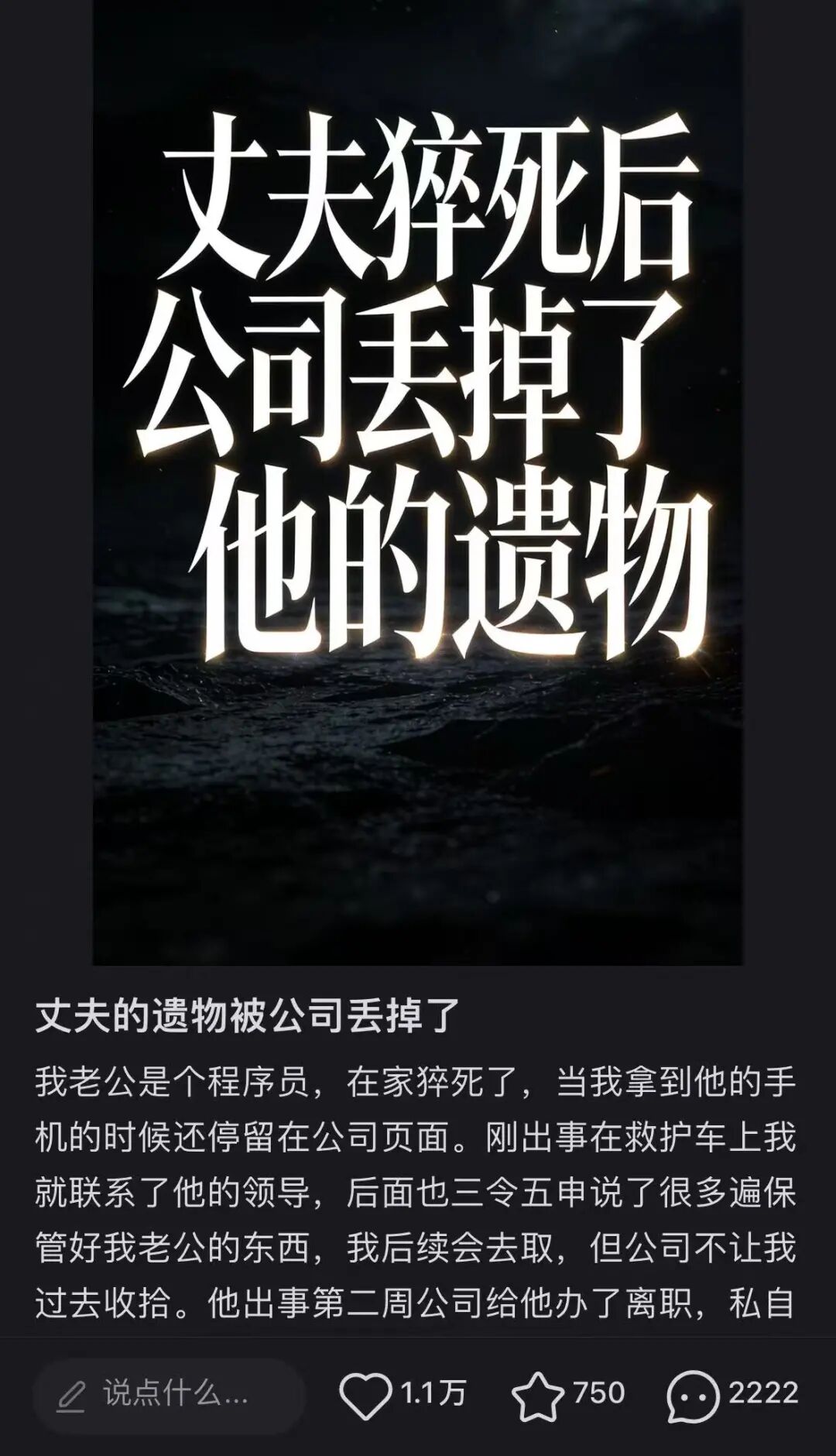 但这些荣誉证书到底是真荣誉,还是资本家给打工人低成本熬的鸡汤呢?或许只是画出来的草料罢了,最终也只是一堆会被扔进垃圾桶的废纸,除了发这荣誉时,资本家画饼的嘴脸,最终谁也不会记得,也不会对这个打工人的生活作出任何改变。据其妻子在社交媒体上爆料,在其丈夫去世第14天办理离职、清空工位,寄回私人物品时随意打包致损。她表示:自己在丈夫去世后多次跟公司说了保管好自己老公的东西,后续会去取,但公司不让过去收拾,私自处理了自己老公的遗物。