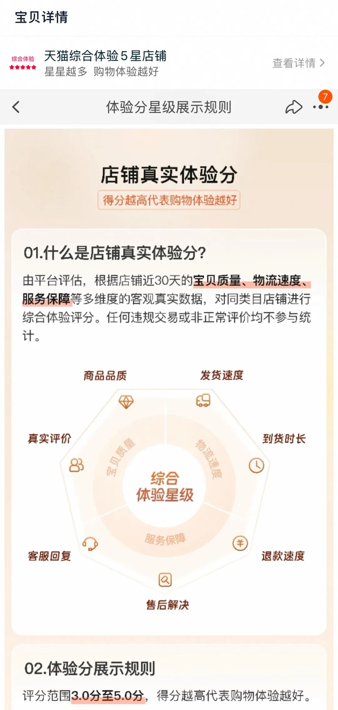 想要回答这个问题,或许数据更有说服力。从淘宝公布的数据来看,2025年淘宝天猫平台好服务商家用户复购率、净GMV均为较低服务水平商家的两倍;真实体验分4.8分以上高分商家成交额同比增速,甚至是普通服务商家(4.5-4.8分)的2.2倍。这些数字,必然不如前些年GMV增长数字那么震撼,但如今放到零售产业的长河中回望,当年那样的野蛮增长,或许才是历史的异类。经营回归常态后,比拼内功才是行业亘古不变的真理:特别在流量红利见顶、产品同质化加剧的当下,想要建立差异化优势、实现可持续的确定性增长,就必然需要修炼内功。过去那套靠低价内卷、浮夸营销的竞争模式,早就难以为继。尤其自2024年以来,不少头部带货主播接连翻车,被套路背刺多了的消费者愈发清醒:低价购物一时爽,但羊毛终究出在羊身上,所谓的“全网低价”,往往最终转移成粗制滥造、以次充好。商家们也从苦不堪言的低价内卷和补贴引流中逐渐醒悟,这种粗暴模式无法长久,留不住客户,只会陷入“越卷越亏”的恶性循环。当野蛮无序的价格战走向终结,精细化运营取代粗放式扩张,用户留存、复购率等指标,以及如何让用户生命周期更长?便逐渐成为新的价值度量衡。敏锐捕捉到这一市场变化和行业转折,淘宝在去年率先推出“扶优”策略:通过商家分层与资源倾斜,对服务好、商品优的商家加大扶持力度,引导竞争走向“优质优价”的良性循环。为了让店铺评价更真实可靠,淘宝还上线了“真实体验分”,直接取代使用了20年的卖家服务评价系统,成为用户了解商品、商家的最新标准。
