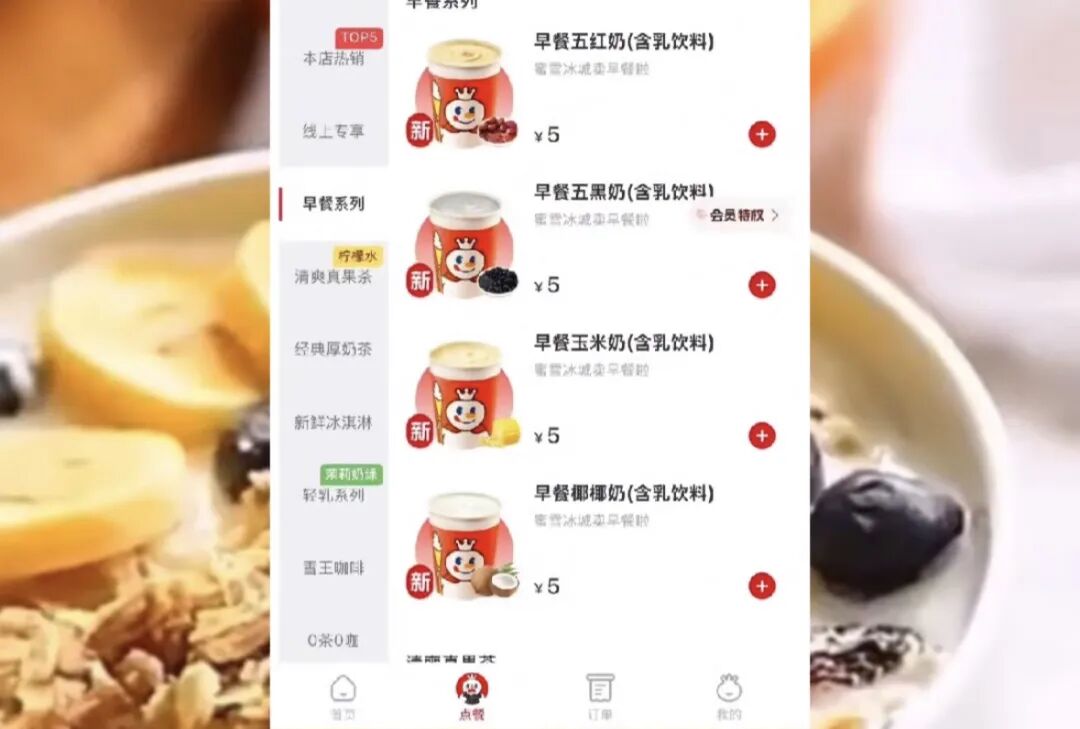 但大家都知道的,后半年以来,雷军的风评急转直下,雷军的评论区,也和以前大不一样了!而如今,这个赛博许愿池,又被装在了蜜雪冰城雪王的评论区,事情大概是,继卖酒后,雪王最近上线早餐了!不少消费者发现,蜜雪冰城已经开始上新「早餐奶」,在官方小程序点单界面新增「早餐系列」,涵盖早餐五红奶、五黑奶、玉米奶等数款产品,均售价5元。