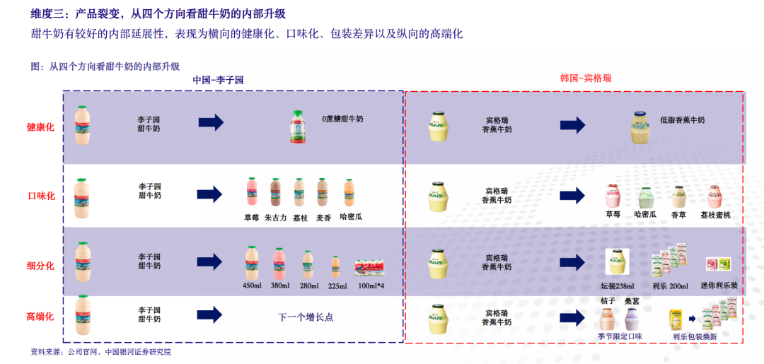 韩国宾格瑞的案例,给予国内企业不少借鉴。其主要通过产品裂变和产品扩张方式来拓展市场空间,已形成以大单品香蕉牛奶为主,各产品线百花齐放的品类格局。