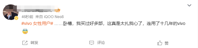 “我买过好多部,这真是太扎我心了,连用了十几年的vivo