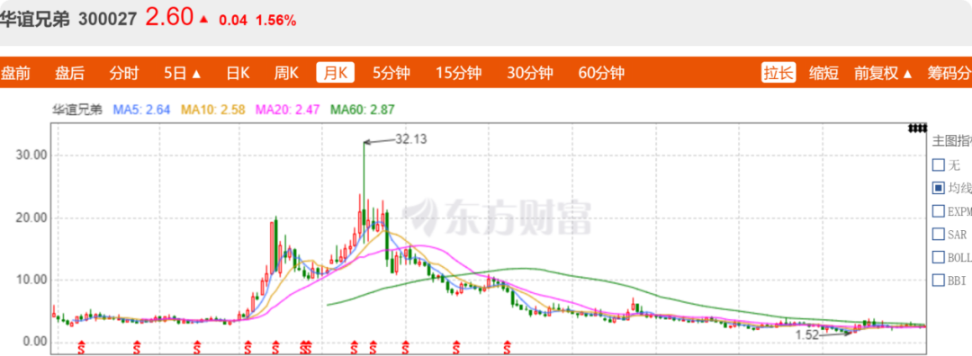 但他们在短视频领域的尝试后,华谊兄弟的股价却迎来一波连涨,截至11月28日收盘价为2.60元/股,基本保持在2025年年内持平。而相比2015年6月的32.13元的股价高点,其股价整体跌幅达92%,如今市值仅剩72亿元。