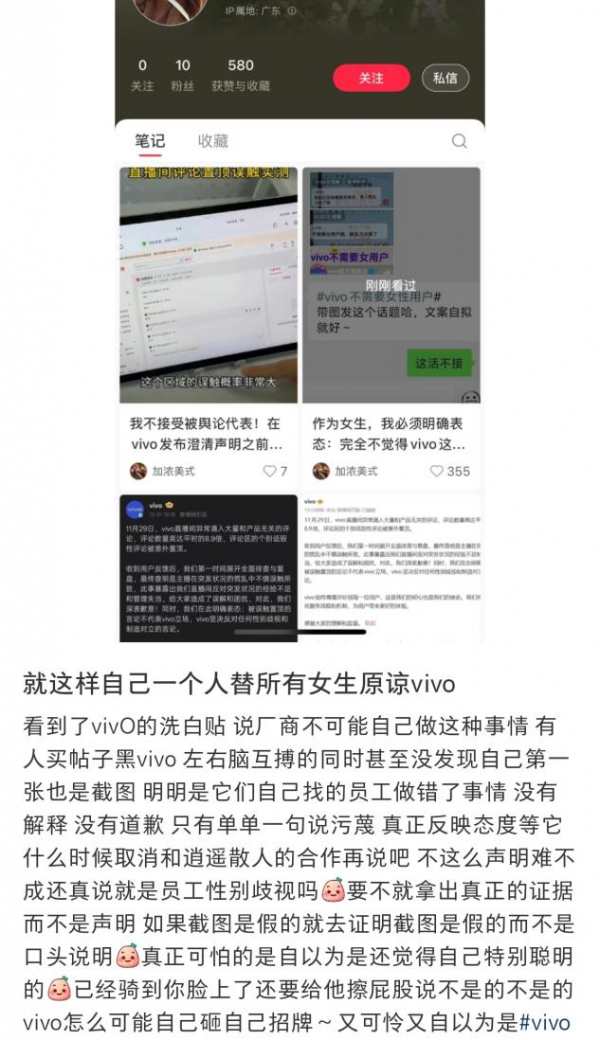 甚至在一些社交平台上,有人针对vivo制定进攻计划,不同级别的账号分工明确,有人负责联系客服要态度,有人负责在直播间反串激化矛盾,还有人执行举报拉黑一条龙,堪称海陆空多维一体作战。