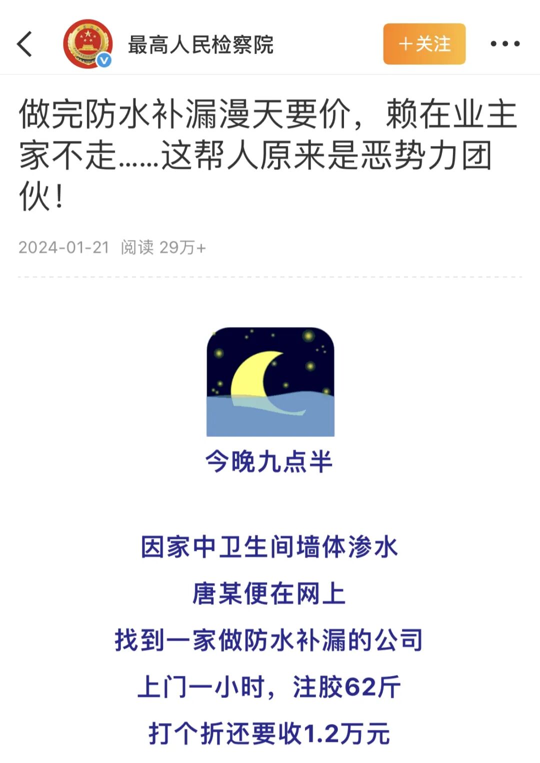 而这个团伙同样以「防水补漏」为幌子,通过强买强卖高额胶水费用牟利,如果客户拒绝支付,该团伙成员便会赖在客户家中不走。被害人遍布杭州市12个区县,对行业秩序造成了极大破坏。柴狗夫斯基©️作者|小柴贰号编辑|谭松END
