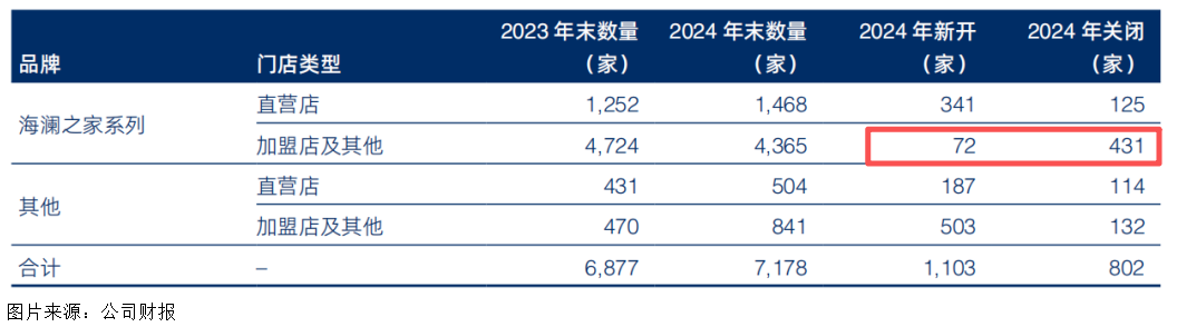 销量和库存的双重压力下,加盟商们纷纷选择退场。2024年公司旗下各品牌新开门店1103家,关闭802家,其中“海澜之家系列”品牌的加盟店及其他门店净关闭数量高达359家。