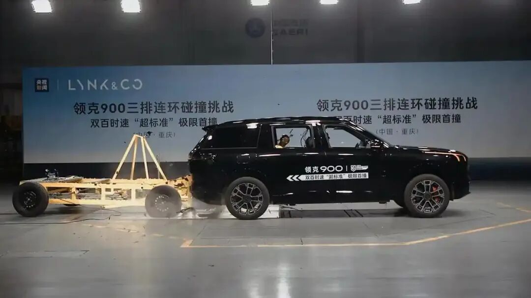 测试结束后,领克900乘员舱结构保持完整,A柱无明显变形,车门可正常解锁开启,E-CALL顺利拨出、双闪正常点亮,高压系统正常下电、燃油系统无泄漏,安全带及时收紧,前排气囊正常点爆展开,假人伤害符合限值要求,电池包也未出现漏液、冒烟、起火及爆炸情况。