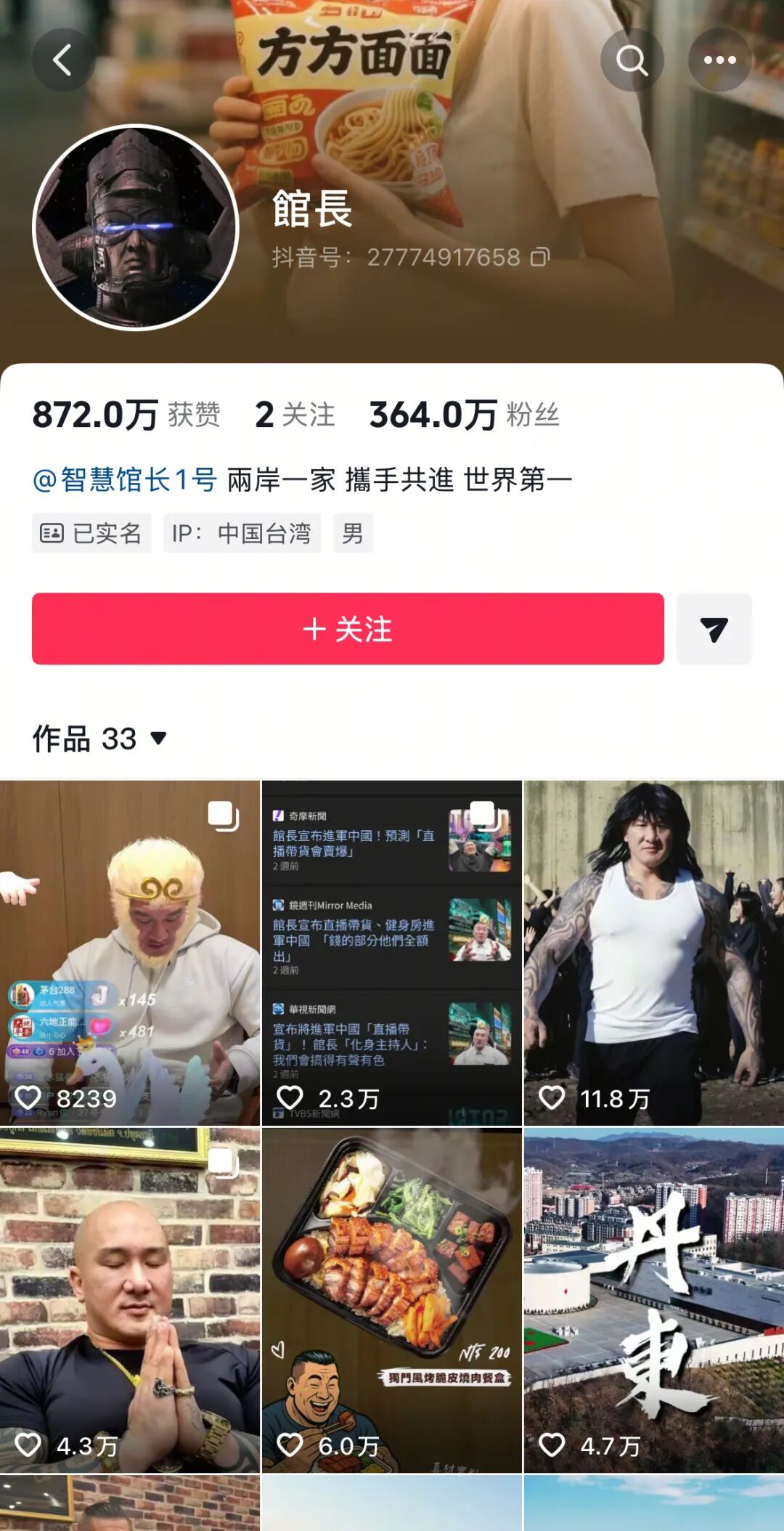 公开资料显示,“馆长”(本名陈之汉)是台湾成吉思汗健身俱乐部创始人,早年曾获台湾地区搏击散打冠军,2017年起通过直播时事评论走红。