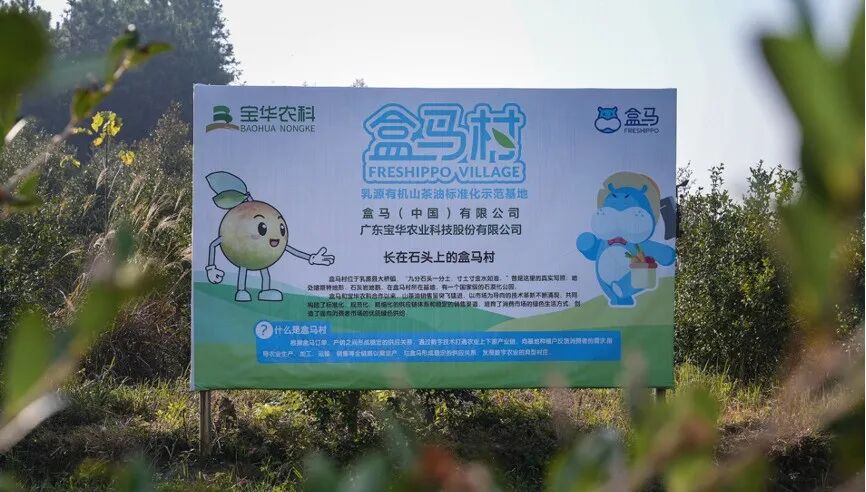 《新品略财经》了解到,早在2019年,广东韶关的农业龙头企业宝华农科生产基地和新零售品牌盒马达成战略合作,双方在2022年共建盒马村,成功打造成首个碳中和有机山茶油生产基地。