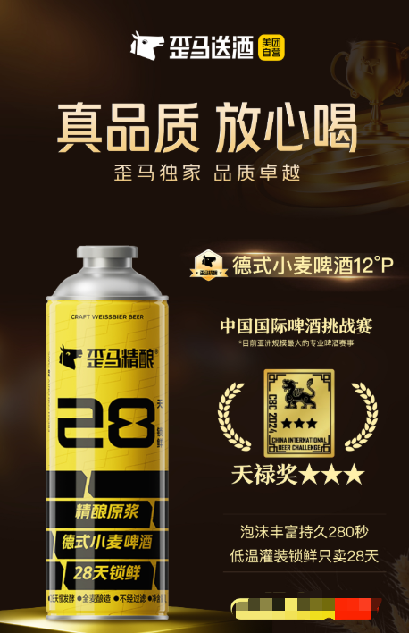 近日,美团旗下酒水即时零售平台歪马送酒传来多则发展动态,歪马送酒预计2025年交易额增长100%会超过60亿元,覆盖超200个城市。与此同时,歪马送酒与华润啤酒正式推出的首款独家定制产品“雪花全麦白啤”也登陆全国市场。