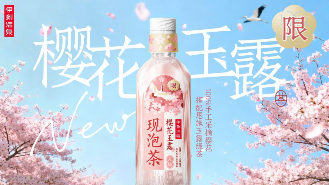 伊刻活泉现泡茶也新添“玫瑰红茶”“樱花玉露”两款限定茗选,实现锁鲜技术与花香复配的创新共振,花香入茶,因时而饮。