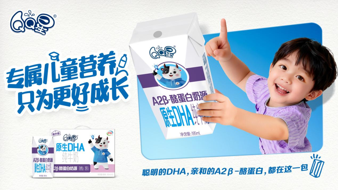 在儿童乳品板块,儿童乳制品市场长期面临“营养配方”与“讨喜口味”难以兼得的困局。QQ星我爱喝牛奶新品精准切入,以生牛乳为营养基石,确保蛋白质、钙质等核心营养的高效供给。同时通过风味工艺优化,成功打造出孩子真正爱喝的愉悦口感,解决了“家长想喂”与“孩子不想喝”的消费对立,实现了健康需求与市场接受度的双向满足。同时,QQ星还聚焦细分市场差异化竞争。其即将推出的A2β-酪蛋白原生DHA纯牛奶以“只有QQ星的A2纯牛奶”建立品类专属认知,依托伊利集团的限定牧场及专利技术饲喂,让A2型β-酪蛋白纯合基因型的奶牛产出自带酪蛋白原生DHA的牛奶,聪明的DHA、亲和的A2β-酪蛋白,都在这一包,精准匹配儿童成长营养需求。