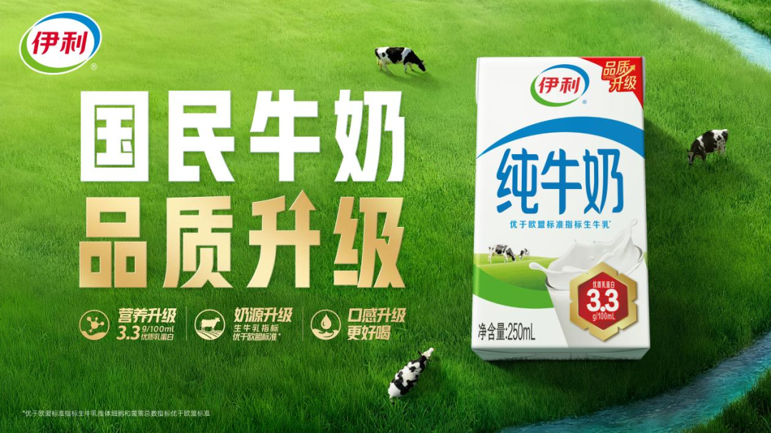 时隔十年,伊利母品牌基础纯奶完成升级:蛋白质含量提至 3.3g/100mL 实现营养进阶,奶源体细胞数、菌落总数均严于欧盟标准,且经消费者测试风味显著提升。在白奶价格下行的背景下,伊利跳出价格竞争,聚焦消费需求,以更高质价比产品推动行业向价值竞争转型。