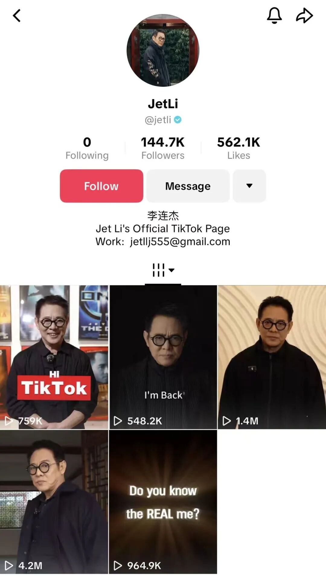 12月21日消息,功夫巨星李连杰昨晚正式官宣入驻TikTok。