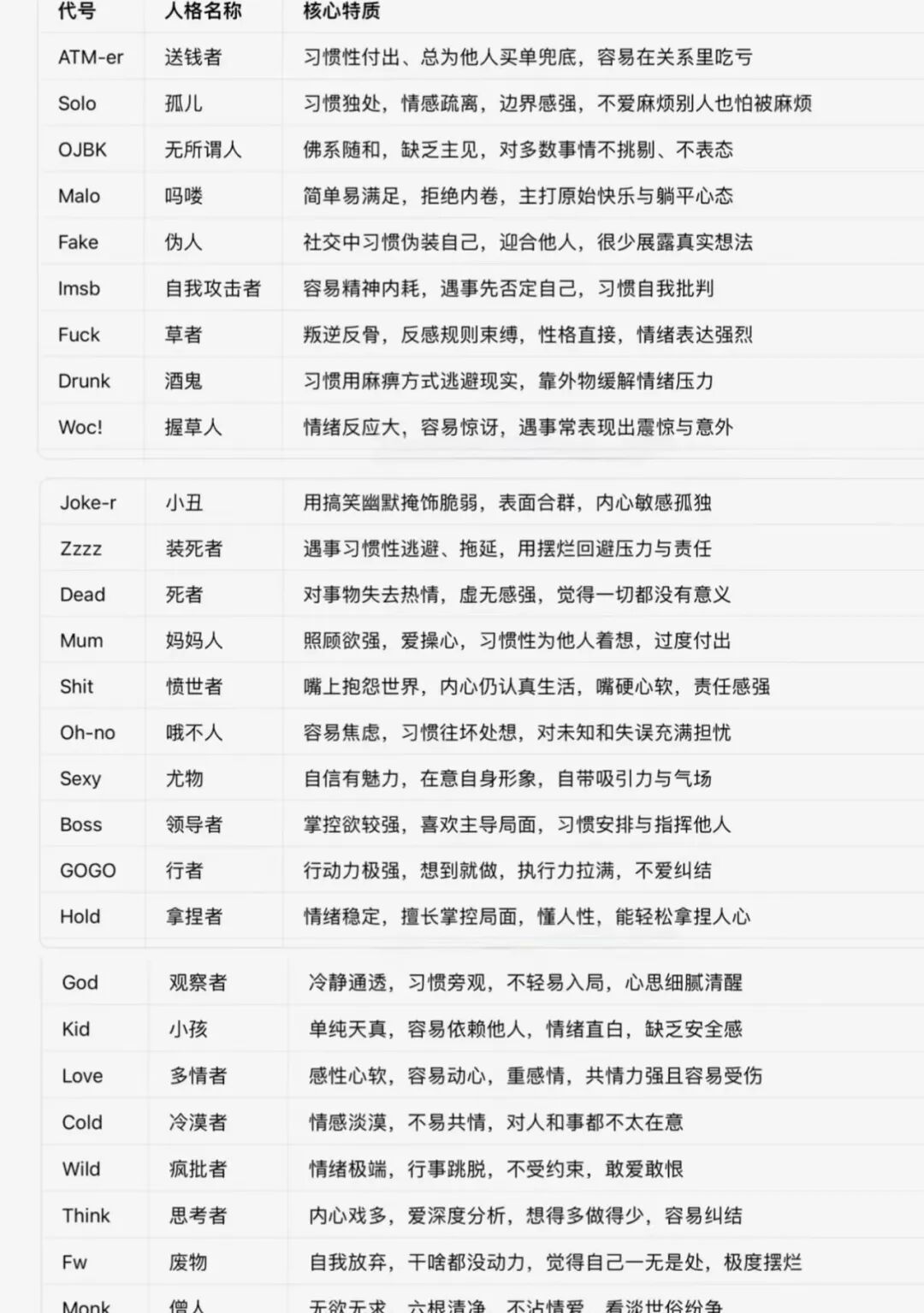 再看一下解释:「死者(DEAD)」被解读为看透人生无意义的终极贤者,「送钱者(ATM-er)」自嘲是“插进别人焦虑、吐出没事有我的人形ATM机,「吗喽(MALO)」则象征“拒绝社会规训、在树上荡秋千的原始灵魂……