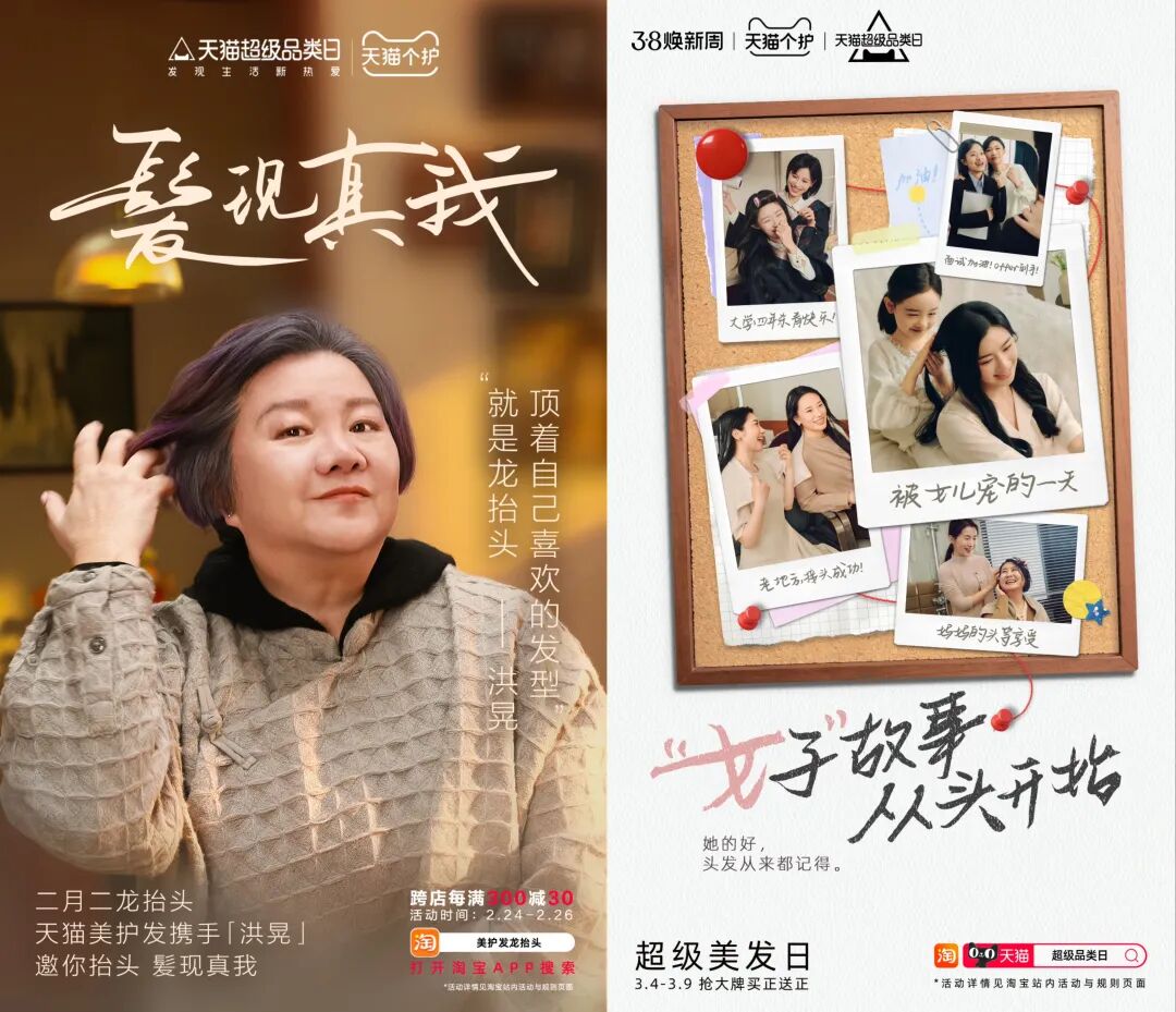 ▲图/左为2025年天猫美护发龙抬头主kv,右为2026年天猫美护发龙抬头主kv