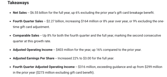 3月5日,维多利亚的秘密发布了2025财年第四季度业绩。数据显示,报告期内维密实现销售额22.7亿美元,同比增长8%,高于分析师预期的22.3亿美元;调整后每股收益为2.77美元,同样高于市场预期的2.52美元。
