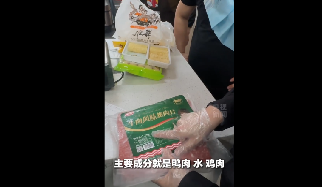 然后是鸭肉变“牛肉”。先给大家看一句神回复——记者问福建漳州刘文祥麻辣烫的店员:你们这卖的是牛肉吗?店员说:“牛肉都三四十一斤,我们才卖二十一斤,你觉得有可能是纯的牛肉吗?”我寻思这哥们说的好像……有点道理???所以菜单上写牛肉,其实你自己该知道那不是牛肉?行,怪我咯。(背后是什么:鸭肉、鸡肉冒充牛羊肉,线上线下标注不一致,多地门店都这样。)