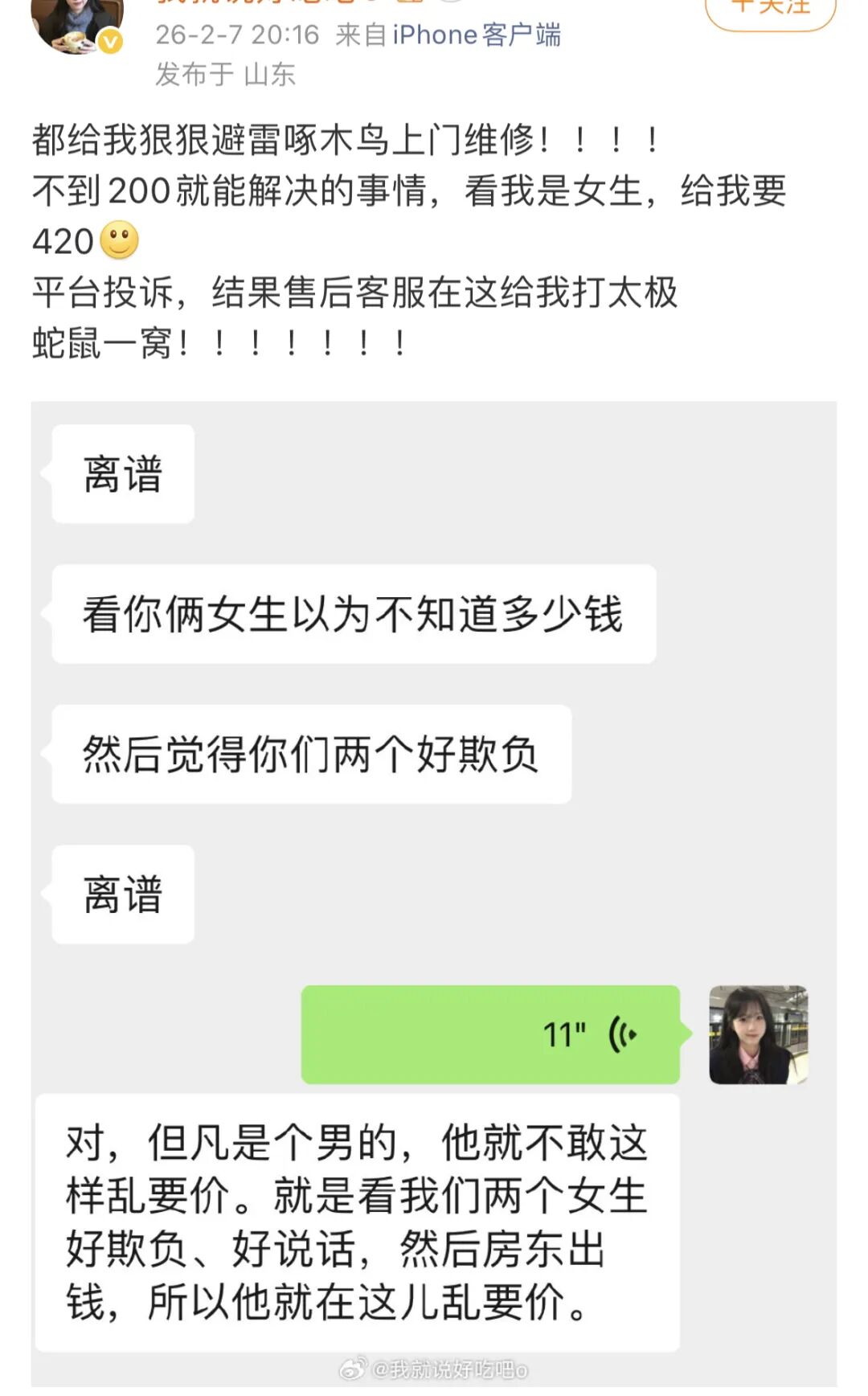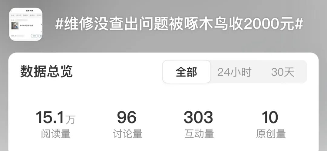 另一个话题是——维修没查出问题,被啄木鸟收2000元。