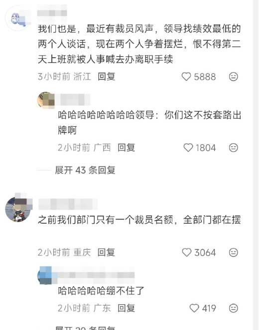比如今天的一个热搜话题——公司决定裁员后所有人都摆烂了……