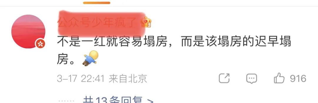 对此,有网友表示:不是一红就容易塌房,而是该塌房的迟早塌房。