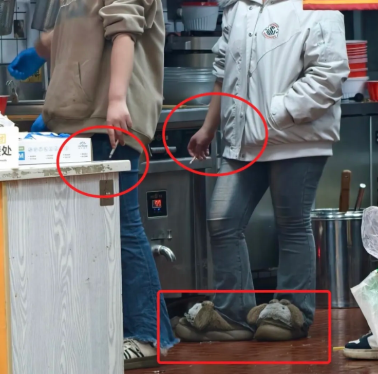 不仅后厨,还有员工在就餐区也在明目张胆地抽烟。