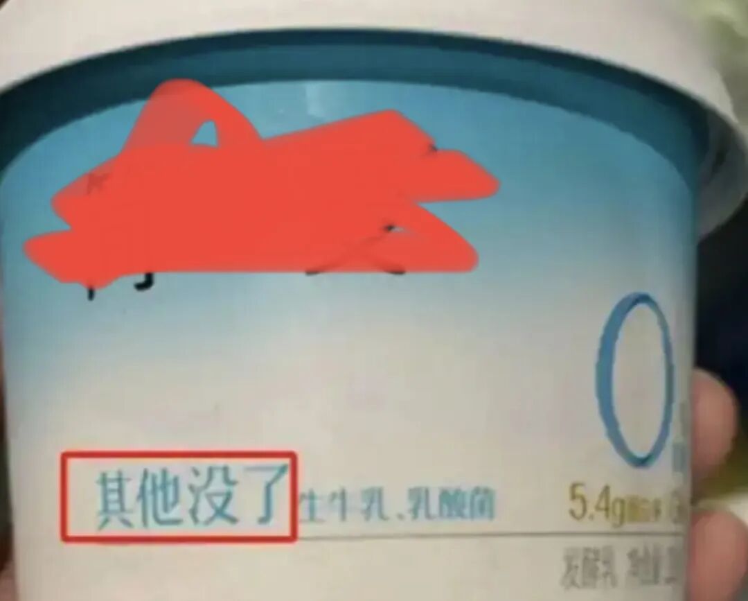 还有某款网红酸奶,瓶身上标注疑似配料表的解释:生牛乳,乳酸菌,其他没了!