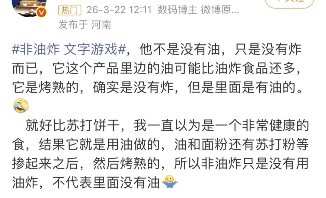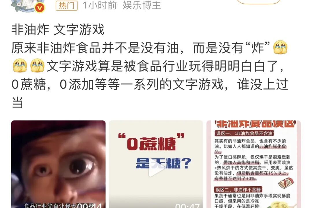 而今日的热搜话题上,「非油炸食品」又塌房了,所谓的非油炸,竟然也是文字游戏。