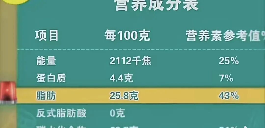 比如某款薯片脂肪含量每100g高达25.8g,占比高达43%,这简直比油炸还油炸。