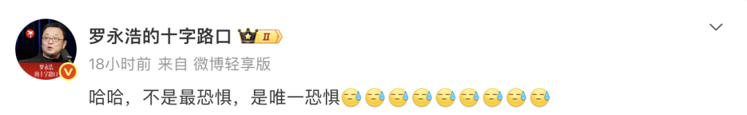 对此,时隔十五年后,面对再度同框的“当年店员”,罗永浩表示,不是最恐惧,是唯一恐惧。