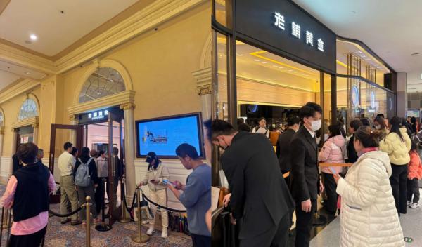 不久前金价连涨数日,有消费者在澳门排队老铺黄金,早上排队一小时取到31号,结果下午三四点方才进店;还有消费者早上八点前往门店排队,结果发现前方居然已有近百人。