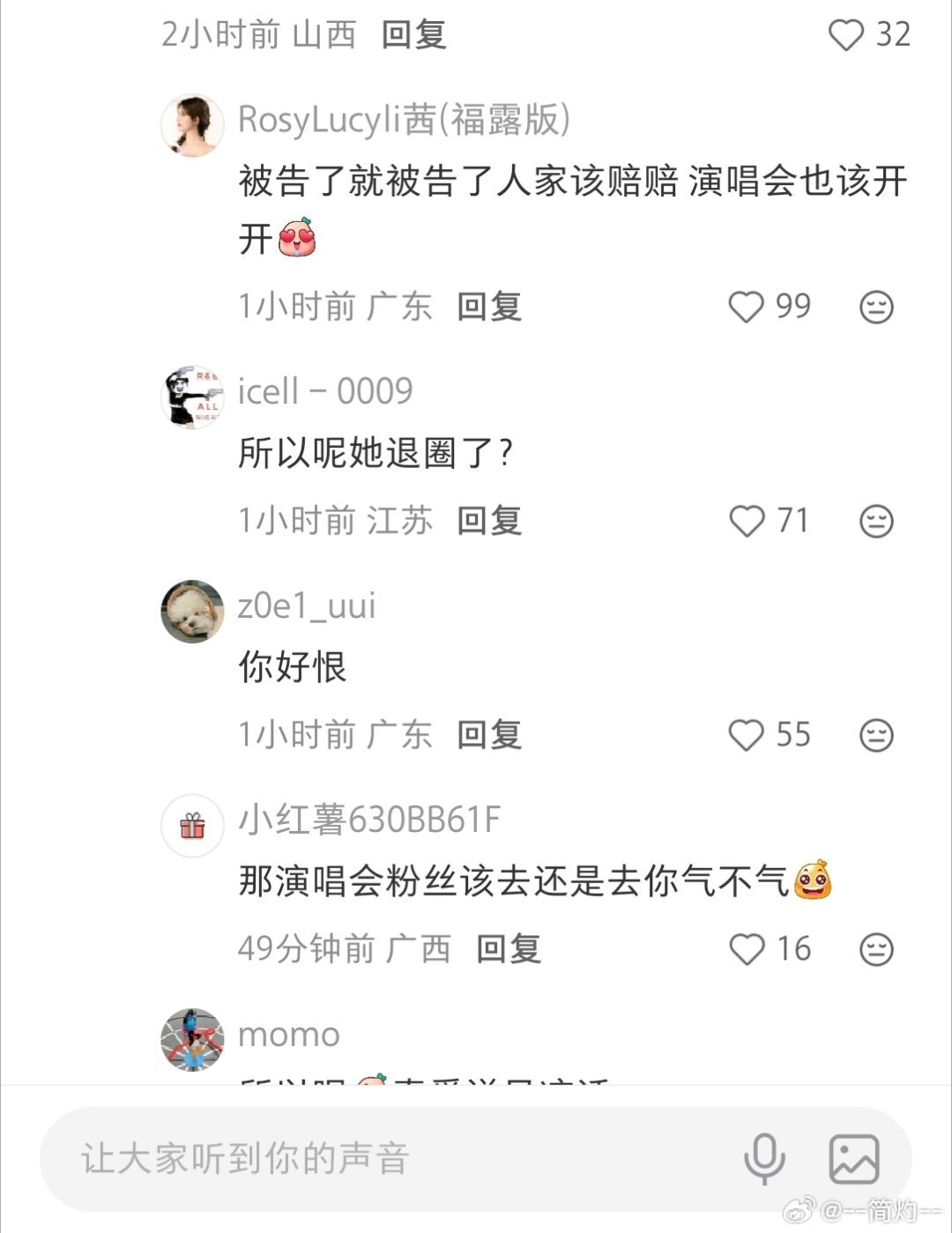 不过,也有部分粉丝比较“佛系”或者说“头铁”。表示:“被告了就该赔赔,演唱会该开开,粉丝该去还是去,你气不气?” 还有粉丝在超话里互相安慰:“知错立马就改,宝宝你很体面也很诚恳。”