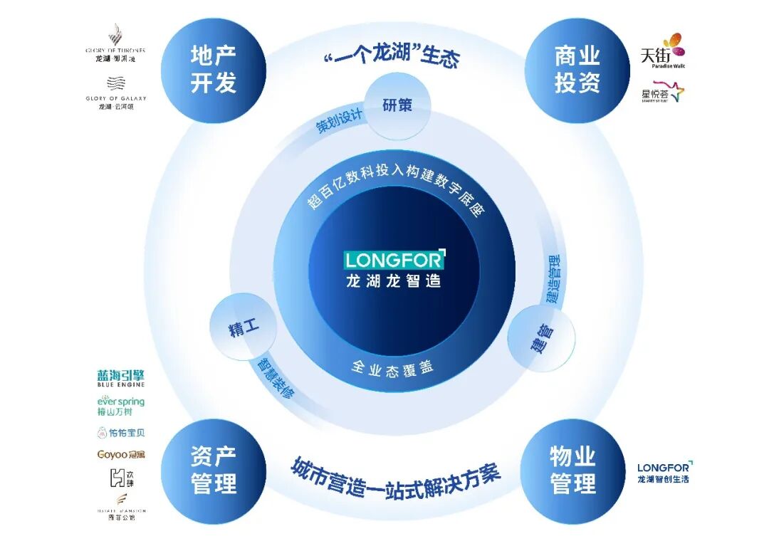 龙湖从过去以地产开发业务为主,发展为如今开发、运营、服务三大板块并进。“一个龙湖”生态体系下,商业投资、物业服务、智慧营造等航道深度协同,共同为空间赋能、为客户创造价值、为消费者带来更好的商业体验,形成独特的综合竞争力。