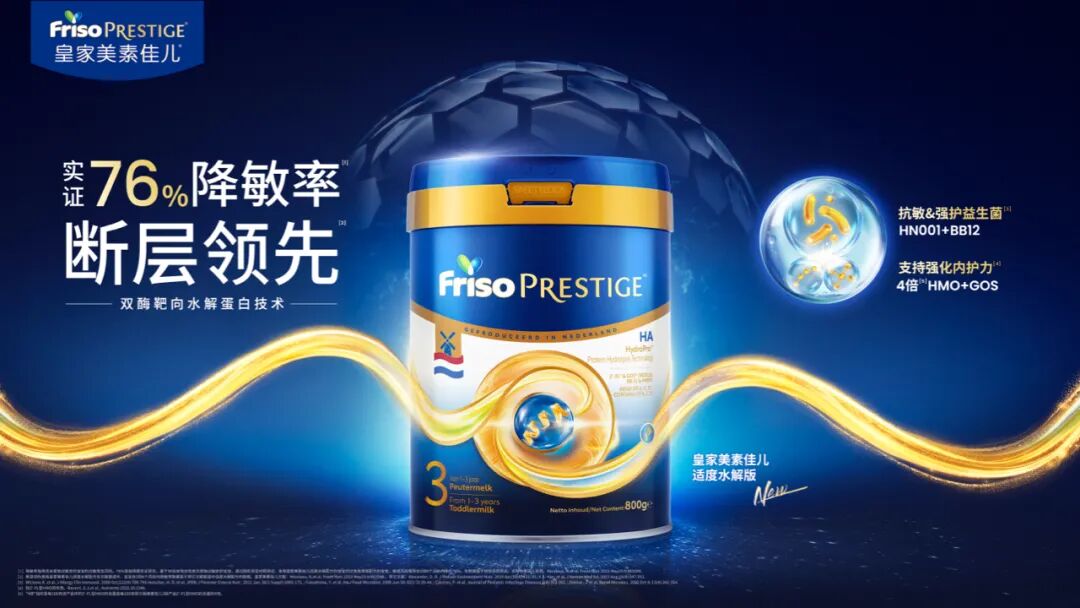 1月26日下午,荷兰皇家菲仕兰正式推出其首款适度水解配方奶粉——皇家美素佳儿适度水解奶粉。新品凭借高达76%的实证降敏率¹,断层领先²于其他同品类配方,也进一步完善了皇家美素佳儿的产品布局。此次新品上市也是菲仕兰应对中国市场日益专业化、细分化需求的重要举措,通过完善涵盖经典系列、有机系列及专业防敏系列的高端产品矩阵,进一步布局多元营养解决方案。与此同时,菲仕兰协同京东全球购、孩子王等渠道合作伙伴,共同推动专业配方产品的市场教育与消费者触达,强化其在中国婴幼儿营养领域的综合服务能力。