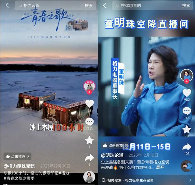 对于空调这类高客单、重决策的耐用消费品而言,信任的建立往往先于购买的发生。格力电器的“100小时极寒直播挑战”是这一打法的典范。它选择在中国“东极”抚远(冬季-30℃)进行一场超长时的极限环境直播测试。通过董明珠的空降引爆关注、CMO的亲身体验强化真实感、技术工程师的全程解读确保专业性,格力成功将“稳定”“耐寒”等抽象技术语言,转化为观众亲眼所见的震撼画面。最终,这场总曝光超5亿的“科技真人秀”,实现了支付GMV同比260%的增长。其启示在于,对于重决策的耐用消费品,创造一种“眼见为实”的极致体验场,是建立深度信任的快速路径。